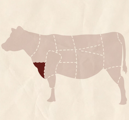 Iata o parte interesanta ca si aroma, ca si compozitie de grasime si ca marmorare. Grasimea este cea care protejeaza cele doua bucati de muschi. O parte anatomica interesanta dar care necesita o procesare lenta si de mare efect daca este bine facuta.