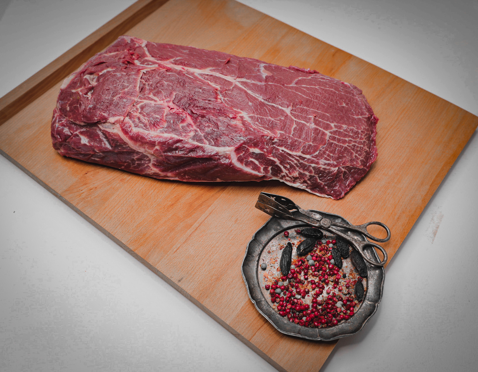 Localizată în jurul osului scapulei și al umarului, prezintă o proporție bine echilibrată de carne și grăsime, cu un gust intens și aromat. Alături de piept, poate fi un mix interesant pentru burgeri. Se folosește adesea pentru gulaș și tocănițe.